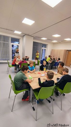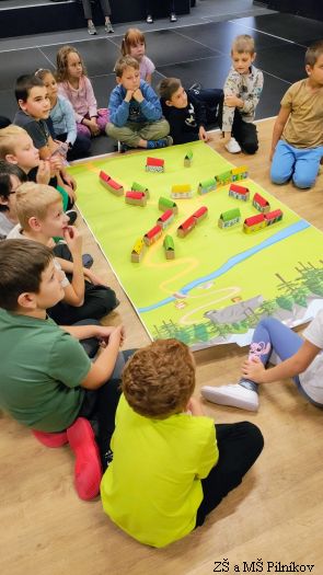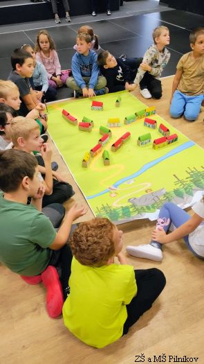 Ve středu 17. 9. 2025 děti ze 2. a 3. třídy ZŠ Pilníkov prožily dopoledne v trutnovském SVČ. Byl pro ně připraven zajímavý program plný kooperativních her, tvoření, společných aktivit. A jaké bylo téma? Ocitli jsme se na úpatí hor. Děti společně vytvořily vesničku, kde žili různí lidé. Všichni se snažili, aby jim spolu bylo dobře. Společnými silami vesničku připravili na soutěž o Vesnici roku. Jenže v horách se objevil velký obr, který vyvrátil stromy. Co s ním? Vyženeme ho? Zničíme ho? Budeme se ho bát? Co když se víc bojí obr? Nakonec vše dobře dopadlo, obr se stal kamarádem, pomohl vesničku vylepšit a společnými silami všichni získali titul Vesnička roku.