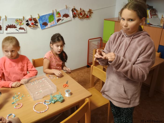 Podzim ve školní družině byl hodně pestrý. Děti si užívaly pěkného počasí v přírodě, vyráběly podzimní lucerničky, poznávaly stromy podle listů a plodů. Na konci měsíce jsme společně pekli perníčky na vánoční trhy a některé děti si poprvé vyzkoušely být prodavači u stánku školní družiny.