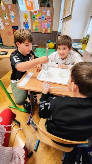 Ve 3. třídě jsme v prvouce zkoumali svět kolem nás. Pozorovali jsme vlastnosti látek, měřili jsme teplotu látek, čas, hmotnost různých předmětů, zkoumali objem různých nádob. Vše jsme si prakticky vyzkoušeli a užili si mnoho zábavného učení.