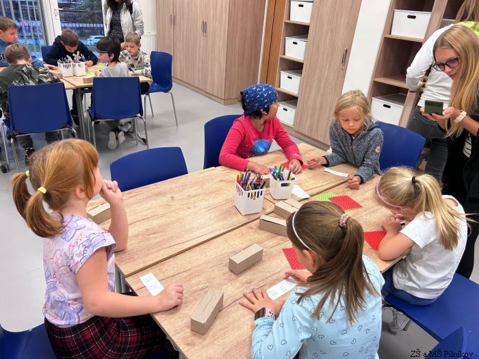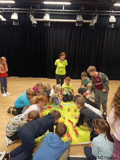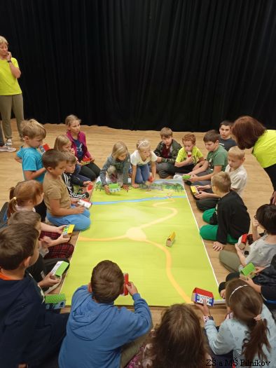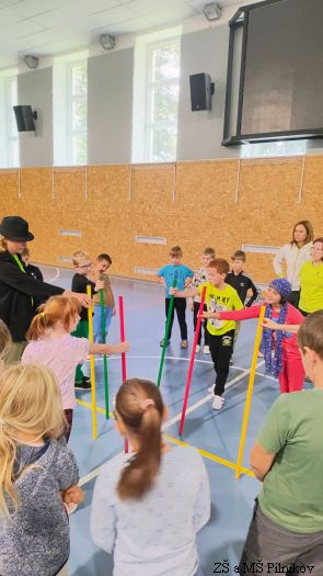 Ve středu 17. 9. 2025 děti ze 2. a 3. třídy ZŠ Pilníkov prožily dopoledne v trutnovském SVČ. Byl pro ně připraven zajímavý program plný kooperativních her, tvoření, společných aktivit. A jaké bylo téma? Ocitli jsme se na úpatí hor. Děti společně vytvořily vesničku, kde žili různí lidé. Všichni se snažili, aby jim spolu bylo dobře. Společnými silami vesničku připravili na soutěž o Vesnici roku. Jenže v horách se objevil velký obr, který vyvrátil stromy. Co s ním? Vyženeme ho? Zničíme ho? Budeme se ho bát? Co když se víc bojí obr? Nakonec vše dobře dopadlo, obr se stal kamarádem, pomohl vesničku vylepšit a společnými silami všichni získali titul Vesnička roku.
