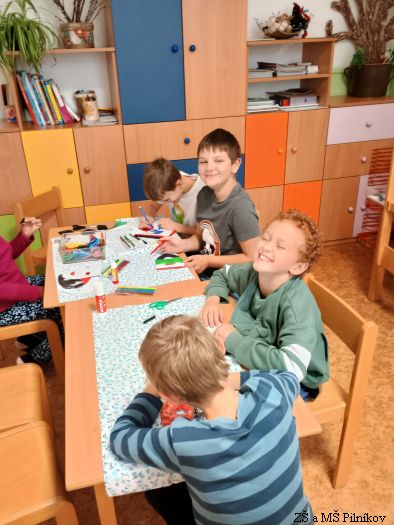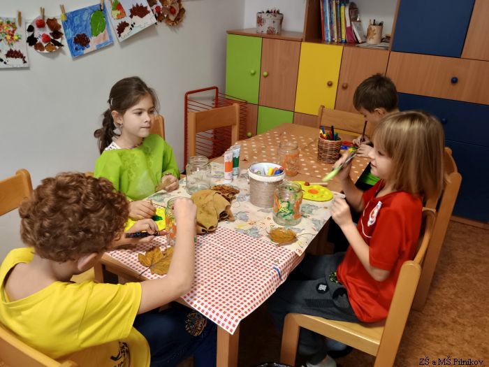 Podzim ve školní družině byl hodně pestrý. Děti si užívaly pěkného počasí v přírodě, vyráběly podzimní lucerničky, poznávaly stromy podle listů a plodů. Na konci měsíce jsme společně pekli perníčky na vánoční trhy a některé děti si poprvé vyzkoušely být prodavači u stánku školní družiny.