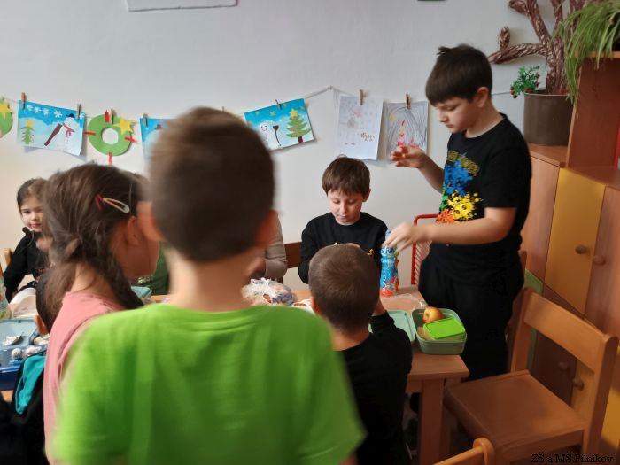 Vánoční odpoledne jsme museli přesunout až na leden, protože děti prvního stupně naší školy skolila vysoká nemocnost. Pojali jsme tedy program trochu jinak a během odpoledne jsme si zahráli vánoční loterii, vánočně laděné inkognito a na řadu přišlo i rozbalování dárečků a pohoštění.